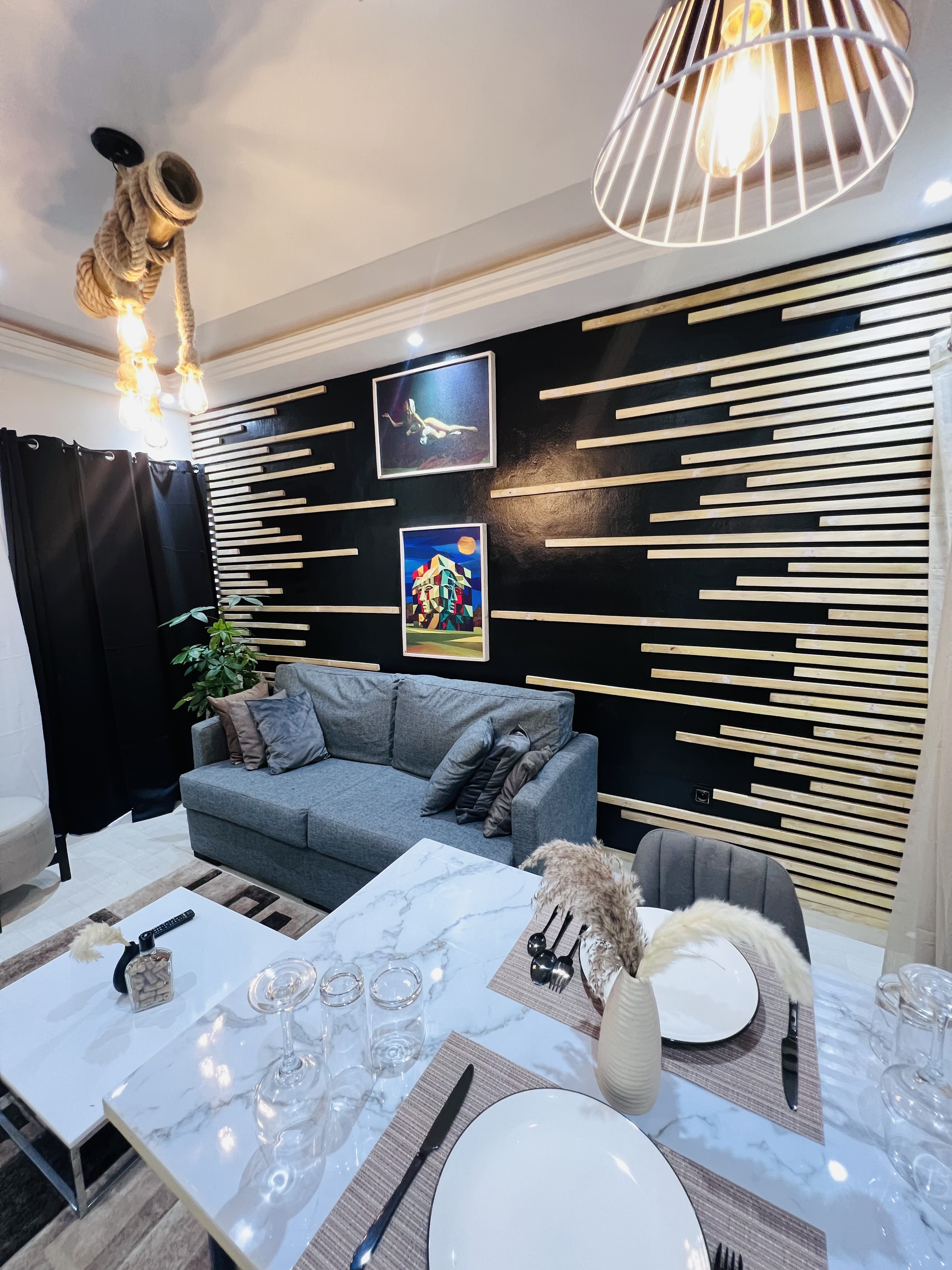 Découvrez l'élégance intemporelle de notre appartement à la décoration noire et blanc, un espace conçu pour captiver et inspirer. Plongez dans un univers de sophistication où le noir devient l'essence même du raffinement et de la modernité. L'Élégance Noire est bien plus qu'un simple lieu de séjour : c'est une expérience sensorielle. Pour ceux en quête de sophistication et de style, cet appartement incarne le luxe et l'exclusivité.