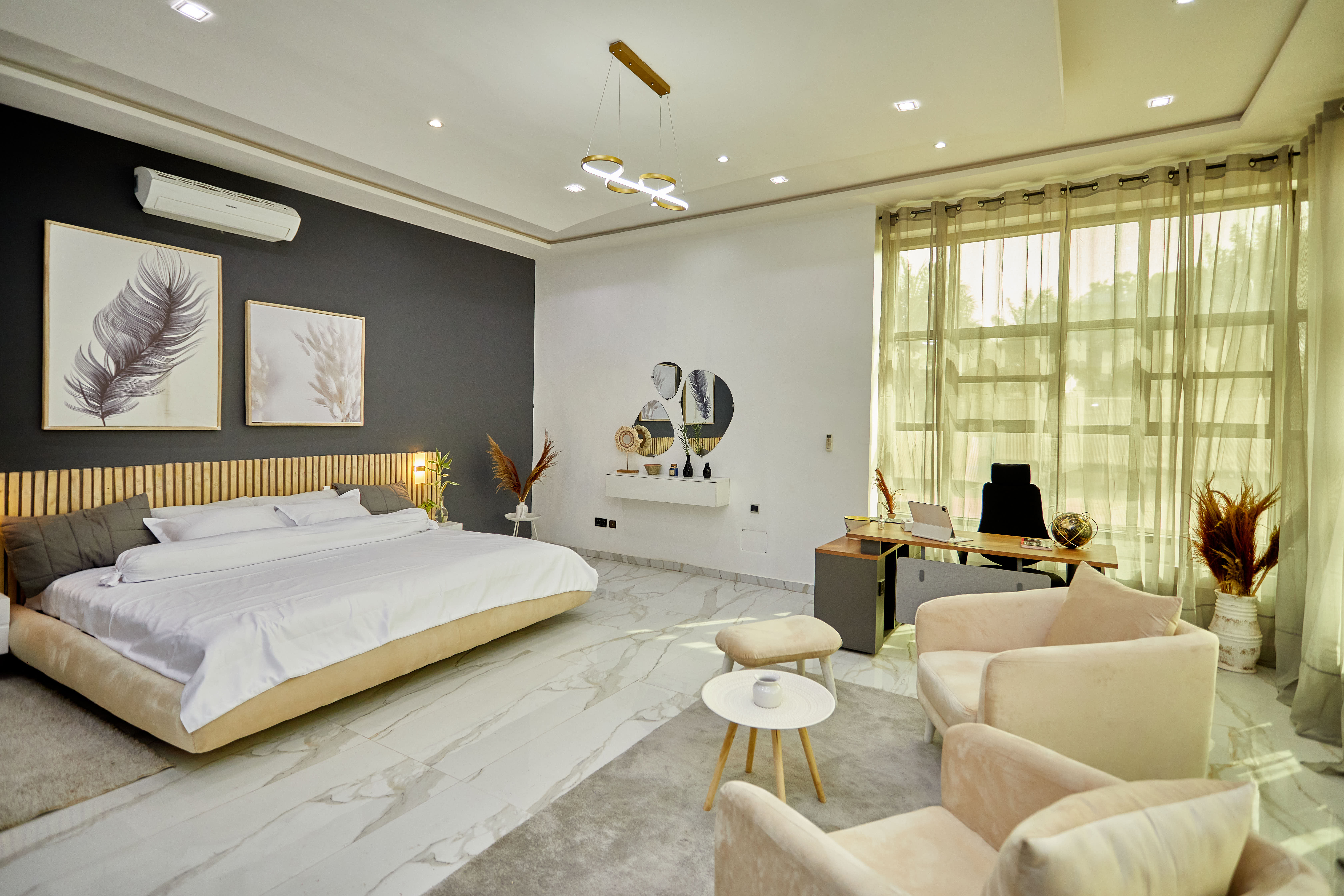 Notre business Suites à Parakou est un appartement de luxe offrant une expérience résidentielle haut de gamme. Nous vous proposons un appartements meublé de manière élégante, avec des installations modernes telles qu’un bureau intégré, un lit spacieux pouvant accueillir jusqu'à 4 personnes, une connexion internet ultra-rapide via Starlink, et une décoration magnifique pour créer un cadre inspirant.