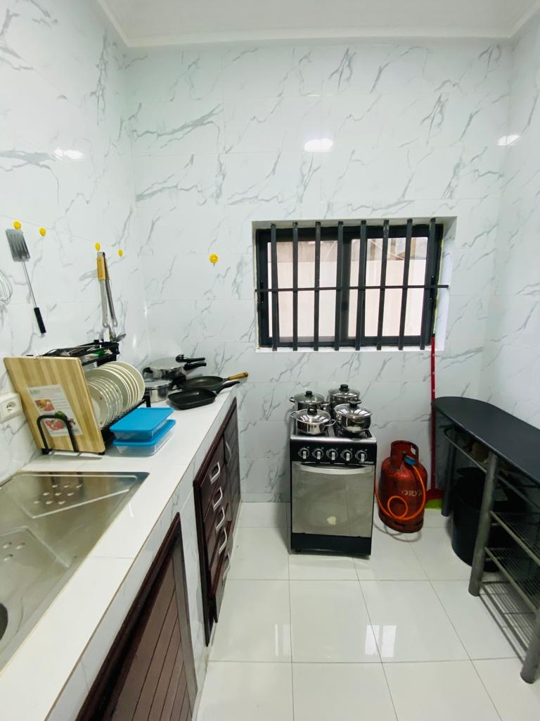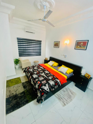 Appartement partenaire moderne à Cotonou, à deux pas du Stade de l'Amitié. Avec deux chambres, un salon, une cuisine équipée et deux salles de bains, cet appartement offre tout le confort nécessaire pour un séjour agréable. Climatisé, avec Wi-Fi et parking, c'est l'endroit parfait pour votre séjour à Cotonou.